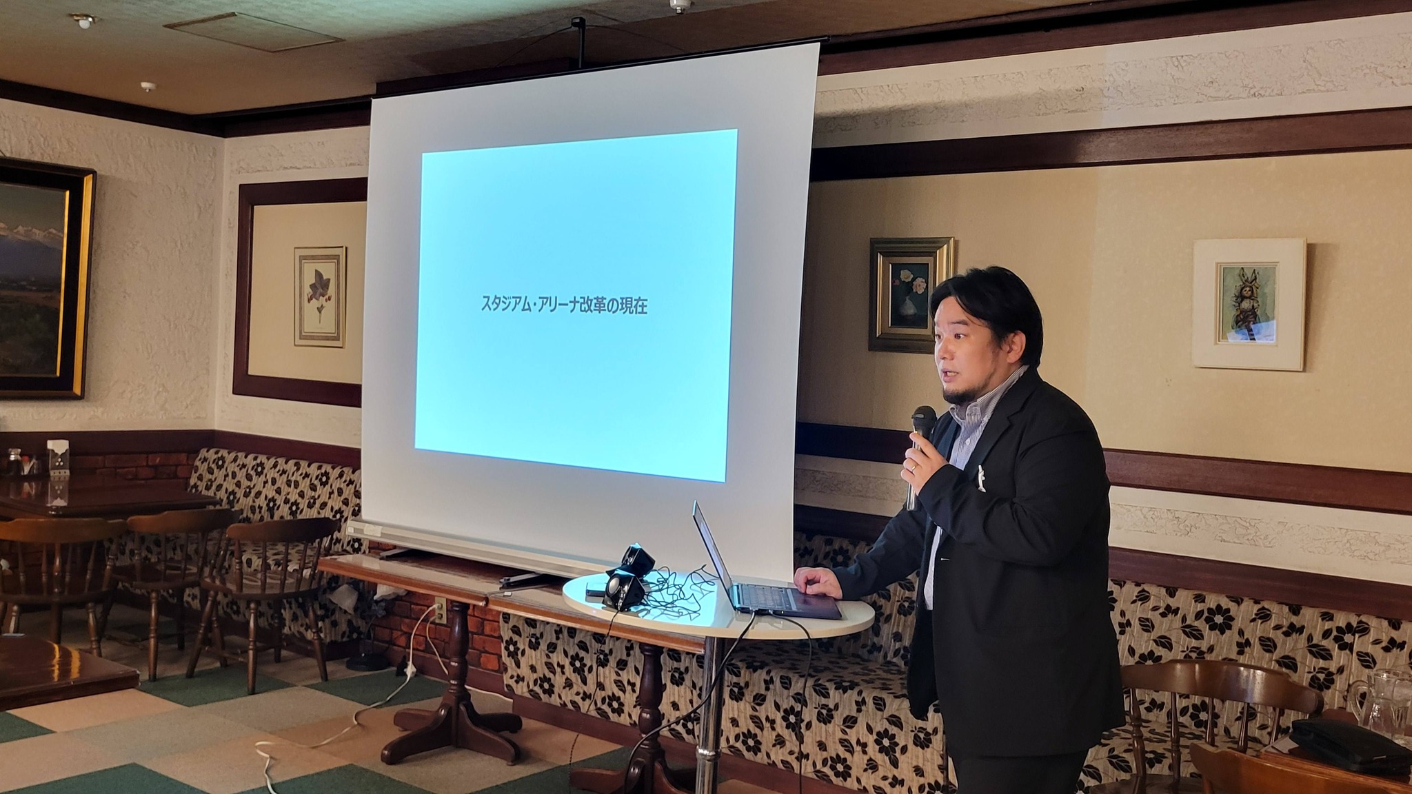 いわき市民といわきFCが中心となり、上林氏が推進座長となって建設にこぎつけたいわき市の事例、その他国内外の潮流などを中心に、とても分かりやすくお話しいただき、みなさん食い入るような姿勢で聞き入っておられました。